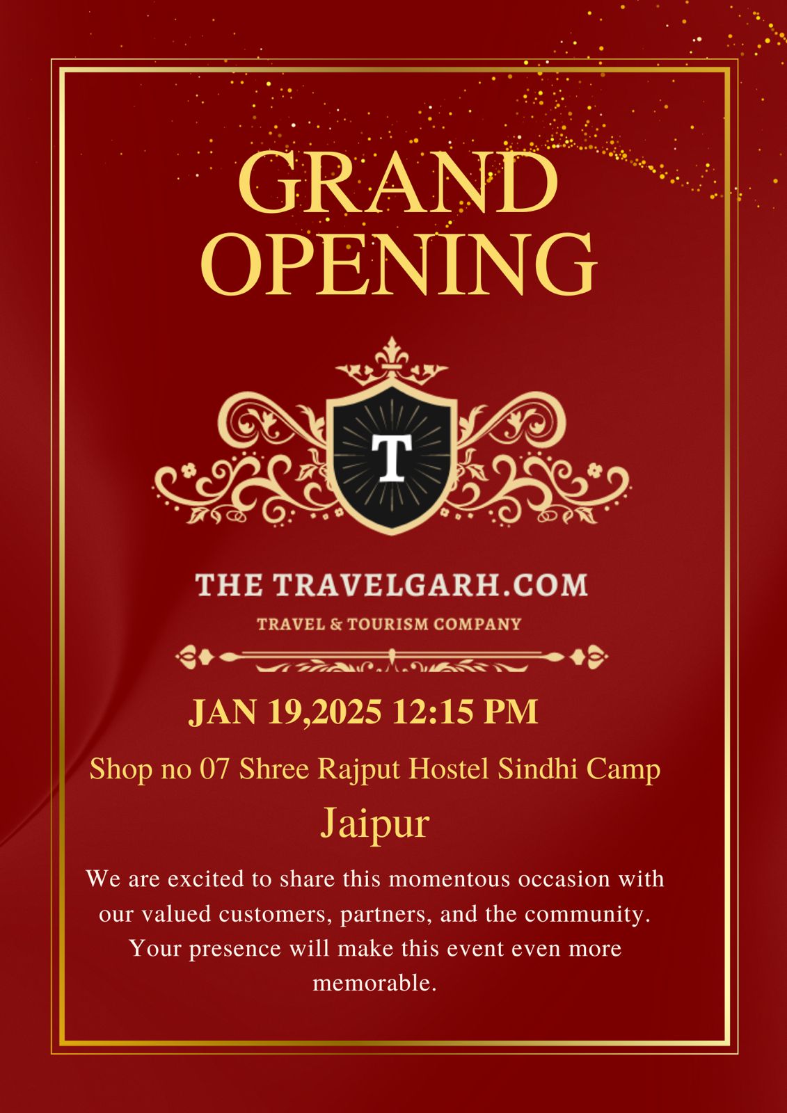 New Office Coming up at Sindhi Camp!You all are welcomed at the grand opening of the TheTravelgarh office.